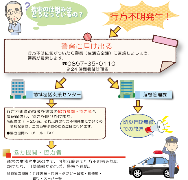 ※事前登録をしていても、行方不明になった時は警察への届け出が必要です。